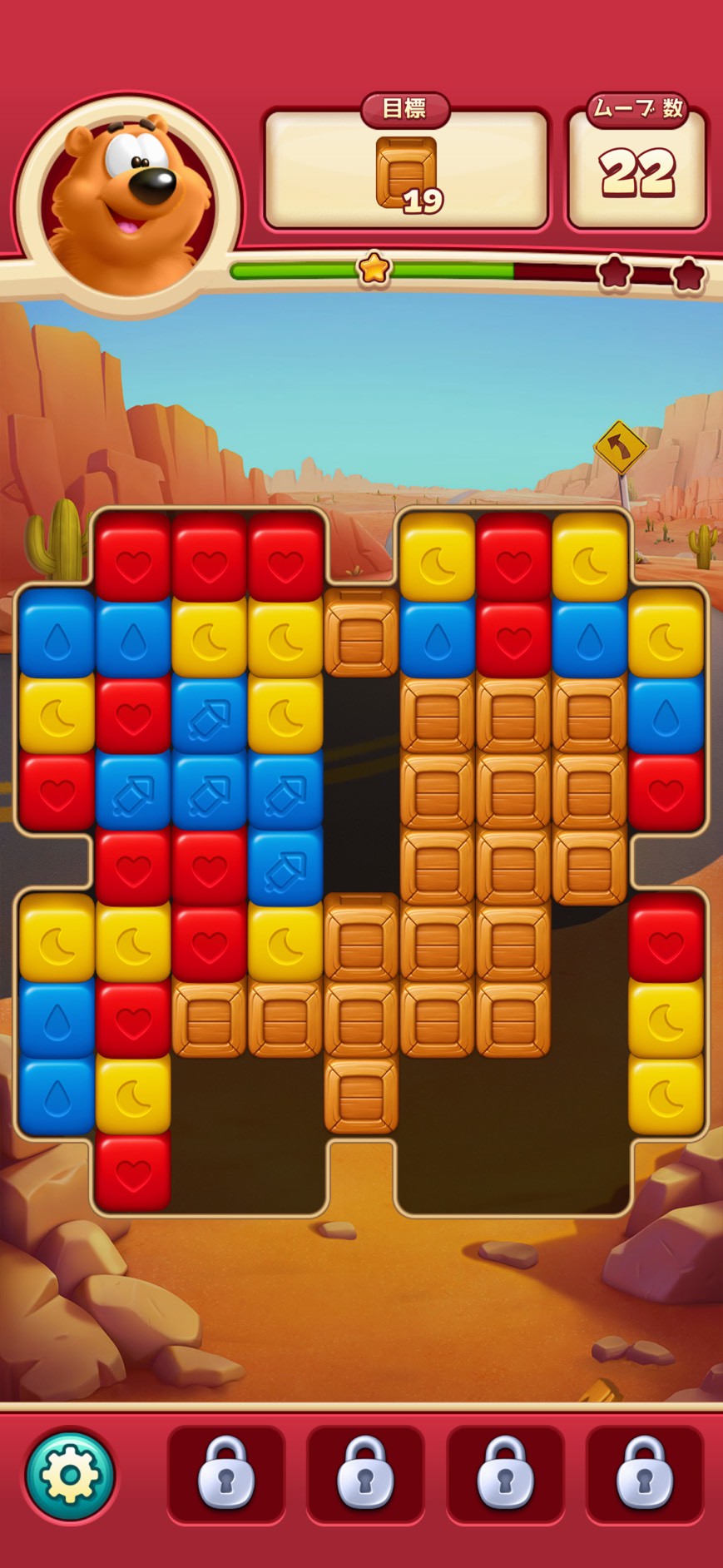 ステージ上に様々な色のブロックが配置され、ブロックを消しながら、クリア条件を目指していくパズルゲームとなっています!