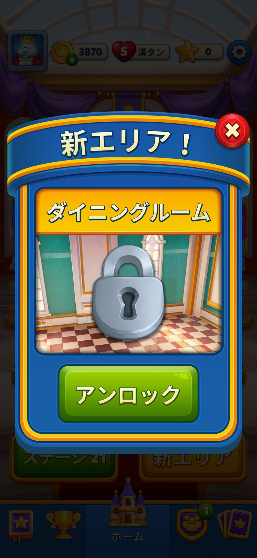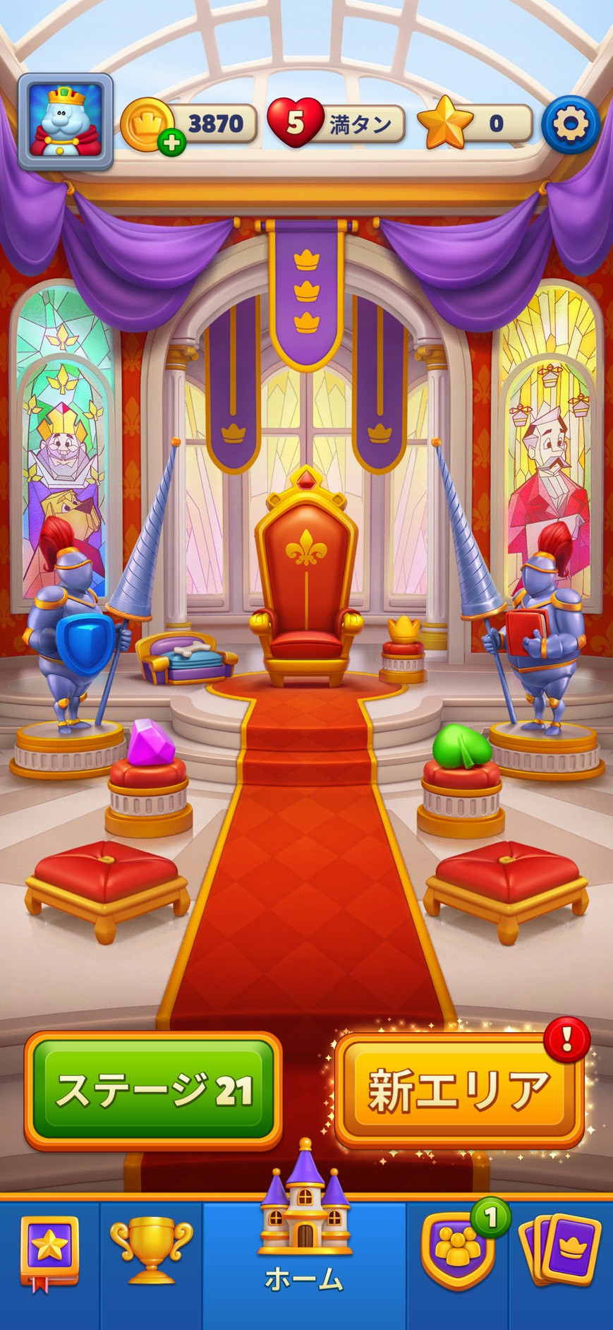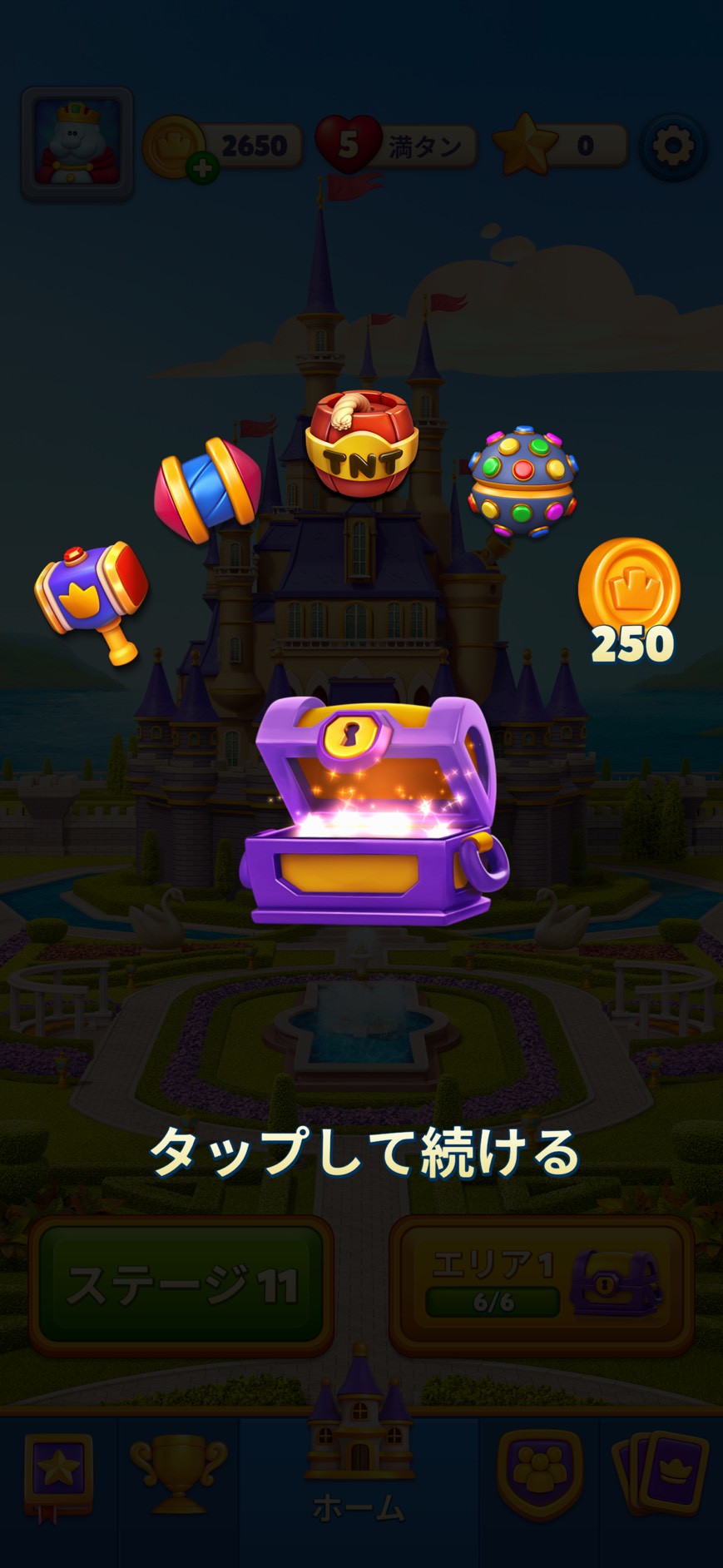 ステージをクリアするごとに、王様の城を装飾できるのが楽しくて、