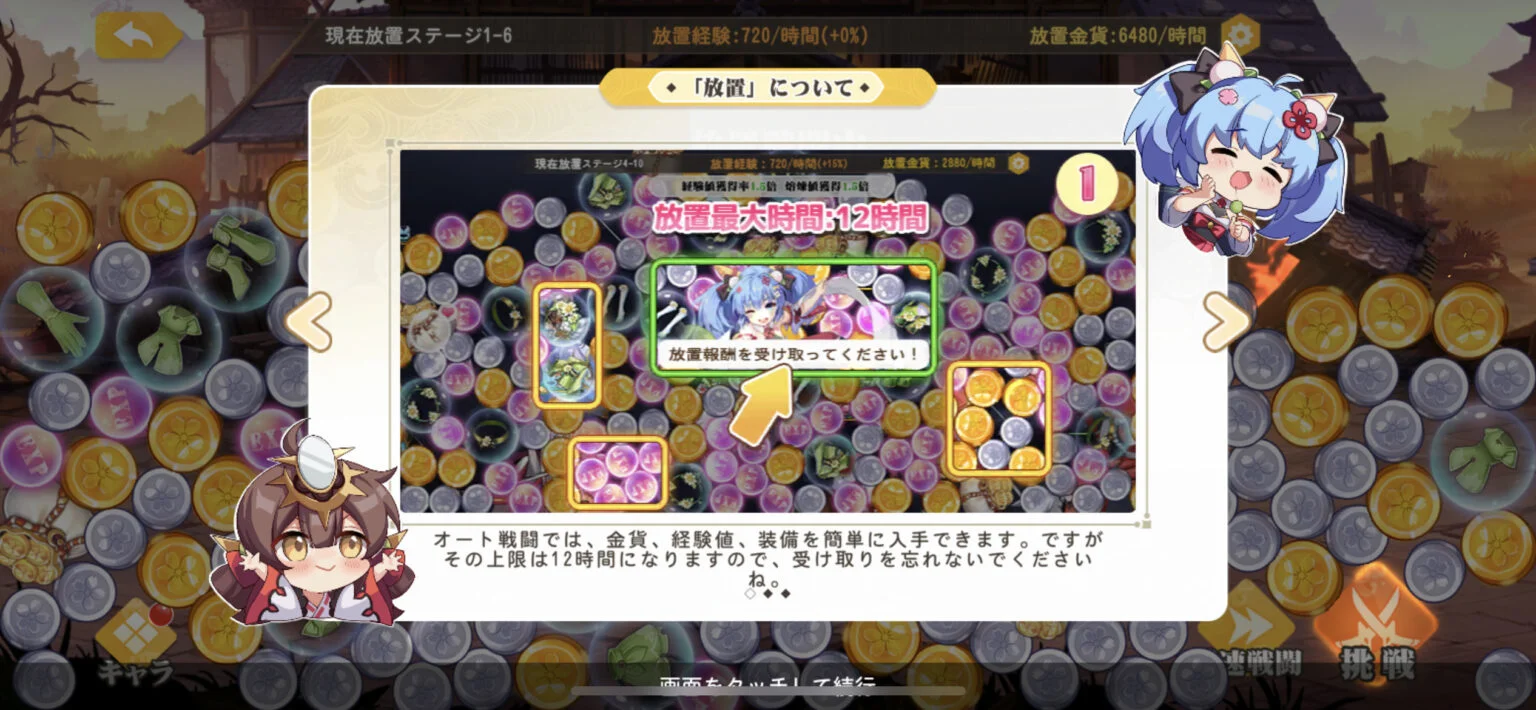 さらに放置システムがあるので、ログインしていない間も報酬が貯まります✨